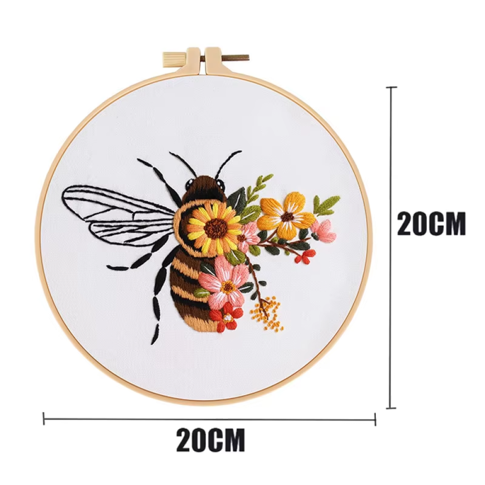 طارة تطريز مجموعة أدوات تدريب غرزة التطريز للمبتدئين - نحل تقدم تجربة تعليمية ممتعة وسهلة لتعلم فن التطريز مع تصميم مميز مستوحى من النحل تشمل المجموعة كافة الأدوات الأساسية مثل خيوط ملونة متناسقة.